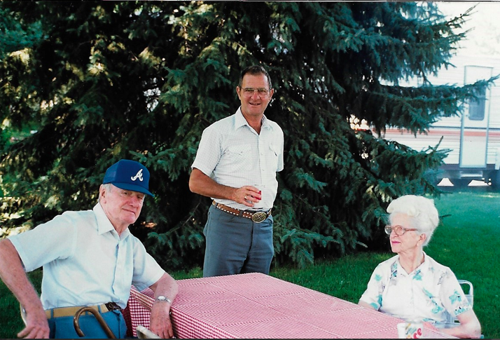This is one of the many 1987 pictures that I scanned today and it relates to our discussion with Carolyn and Ben this morning about growing old. We have seen the decline of some of our fellow residents and also marvel at the ability of several in their upper 90's. Dad would have been approaching his 91st birthday at the time this picture was taken and Mother was 87. While we maintained a close relationship with the Folks, we were involved with our farm and my job until retiring in the spring of '88. I was pleased that the Folks enjoyed my 2nd retirement party in Lincoln. We had our Farm Sale in the spring of 1989. The Folks attended that and talked about all of the interesting things they had done out there including Dad's field work. After the Farm sale we spent 6 weeks on a camping trip to Alaska and attending the International Soil and Water Conservation Society annual meeting in Canada. While there, I accepted the position of Executive Vice-President of the organization with headquarters at Ankeny, IA. We bought a Condo there and reported for duty on September 1, 1989. We maintained our home in Seward and got back quite frequently where we always saw the folks. We had a Family event at the Hughes Cabin on October 22 to Celebrate Dad's 93rd birthday and the Folks 69th Wedding Anniversary. Dad was hospitalized with Acute Leukemia on November 1st, moved to the Sunderman Rest home and died on December 15th. Mother continued to live alone with Vivian available as well as Carolyn and Jon and Mary who had moved back. Tim, Laura and Tony as well as Carolyn, Julie, Heather and Mother came to visit us in Ankeny over the Memorial Day weekend. On June 3rd, Mother had a TIA (Mini stroke), after phone calls to local Doctors as well as her family Doctor her condition improved and we took her back to Seward. Elaine stayed in Seward for a few days to be with her though she appeared back to "normal". All seemed to be going well with our getting back quite frequently including our taking Mother to Church for Communion on December 2nd. Carolyn called us on the 5th to say Mother had suffered a Stroke and was unable to speak. We came right away and went to the hospital as Don's arrived. Vivian and Gladys stayed with Mother over night and she passed away the next day after we all had an opportunity to tell her Good Bye.