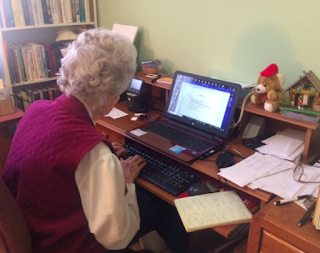 A lot was happening in Seward today with the lighted parade to get started soon. When Dad used to come get us from country school once in a while, with a team of horses and farm wagon, we never thought people would stand in line for such a ride. Nor would have Chris Turner ever thought that this little house that he built on N.2nd St. back in the 1890's be so well remodeled and decorated for the Holiday's, as it is today. It's been well maintained. Things were also happening on North Columbia Ave. where Carolyn was putting up wallpaper in the guest bedroom of their new house. She had already done the guest bathroom. I visited with Verlon this morning and he tells me of enjoying the house pictures as it comes along. The tile floor, wainscoating and colorful wallpaper make for a very attractive bathroom. We admire Carolyn's ability to do the quality job in putting up the wallpaper, just like every thing else that she undertakes. I'm sure the contractors will be impres...